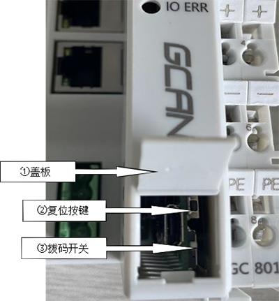 GCAN-PLC-522提供1個程序運行開關和1個復位按鈕。打開蓋板后實物圖,如圖4.1所示。