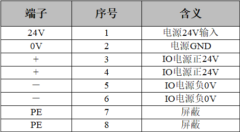 GCAN-PLC-400的電源接線端子排如圖所示,其接口定義如下表所示。GCAN-PLC-400可編程邏輯控制器電源部分包含8個端子,需要注意的是:3號端子與4號端子之間、5號端子與6號端子之間、7號端子與8號端子之間,在模塊的內(nèi)部是相連的。