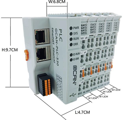 圖2.1 GCAN-PLC外觀及尺寸圖