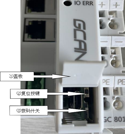 GCAN-PLC-530提供1個程序運行開關(guān)和1個復(fù)位按鈕。打開蓋板后實物圖如圖4.1所示。